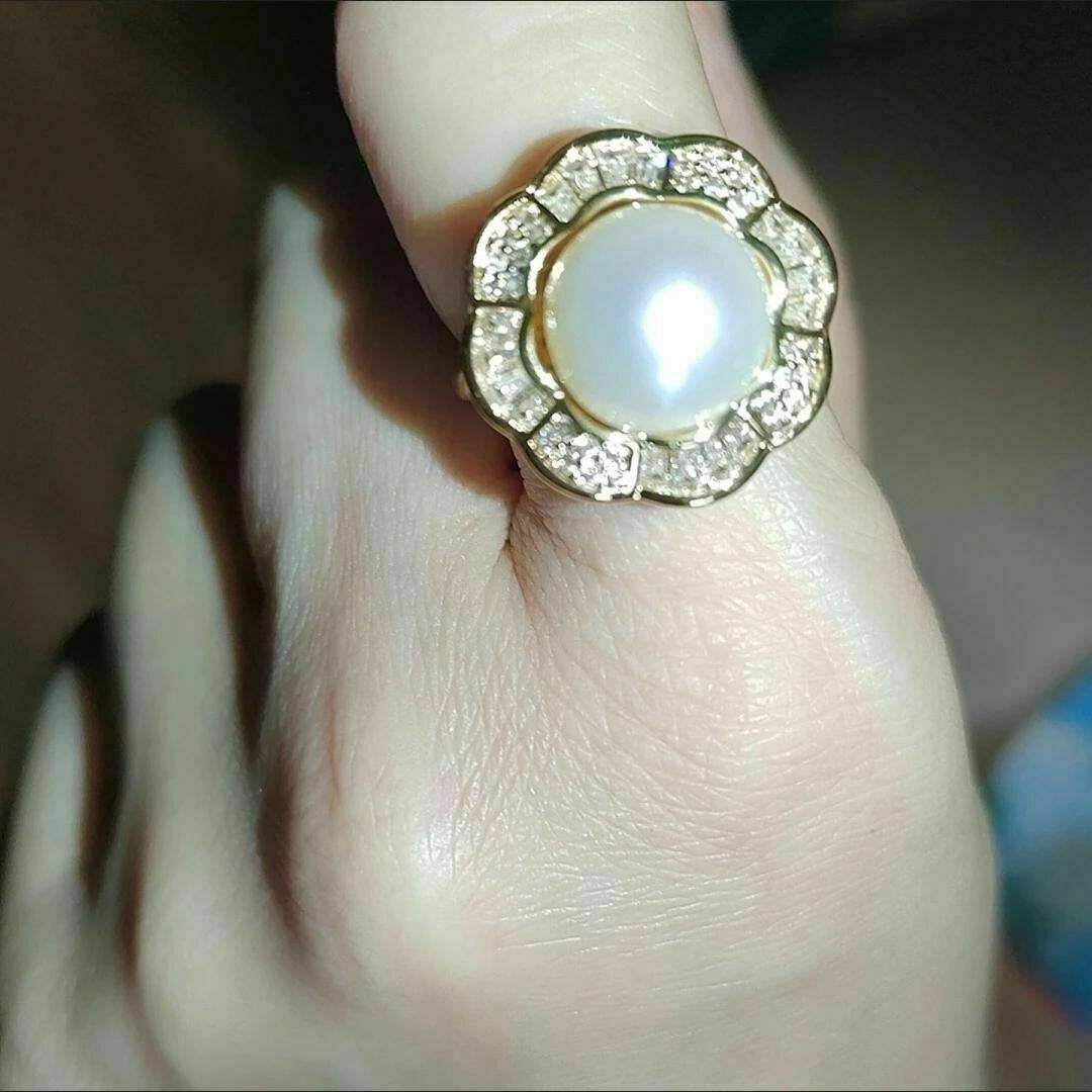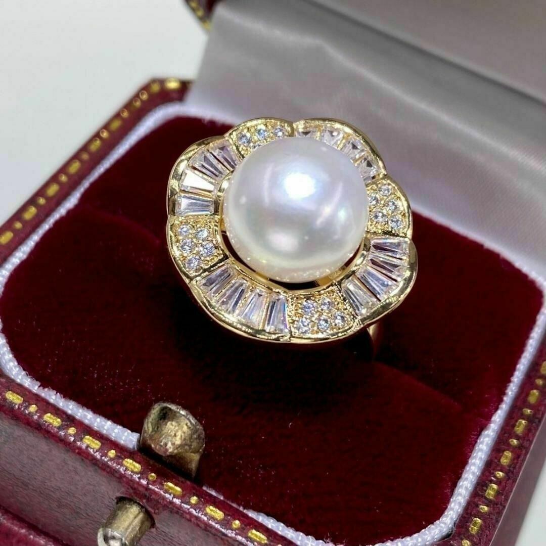 真鍮に18Kコーティング、czダイヤ、淡水真珠