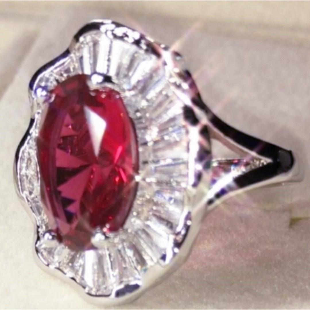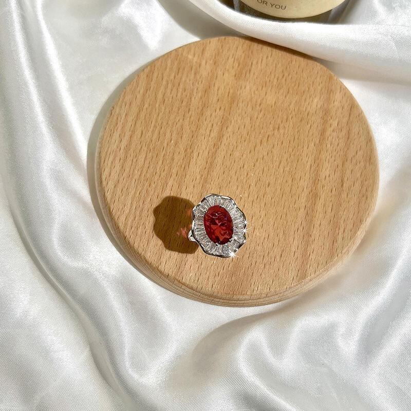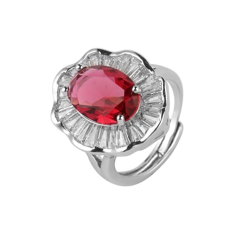 全体的に咲いているフラワーイメージ、オリジナルの人工ルビーと高炭素ダイヤモンドのリングになります。周りには5A高炭素ダイヤモンドを散りばめています。