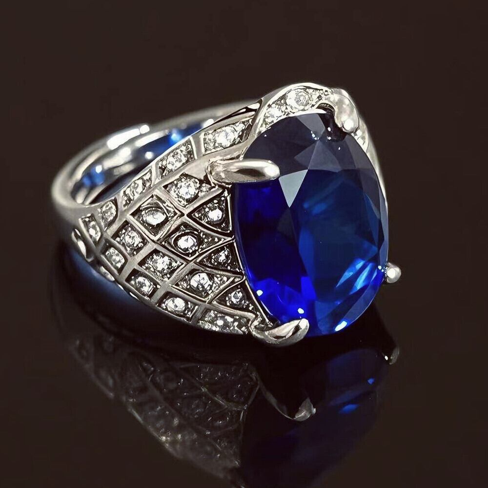 鮮やかなローヤルブルーサファイアを美しいダイヤモンドで囲んだ、華やかで贅沢なリング。