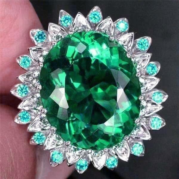 大粒的な巧み58面体のカットにより光を効率よく反射させ、最大限に美しい輝きを引き出す僅かに揺れるだけで、グリーンにネオンが湧き上がり、その光景は魔性の神秘性を感じるほどの美しさです。