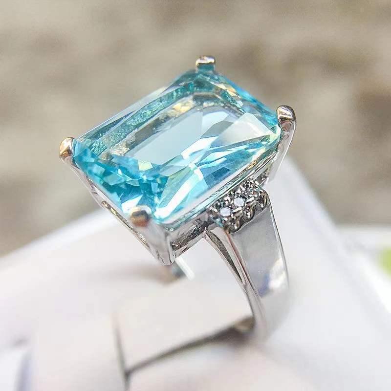透き通った水色の大粒トパーズです!ブルー トパーズ 長角(エメラルド)カット!華やかな煌めきを放つパヴェダイヤモンドをプラチナ3重コーティング加工にセットする気品あるセミハローシルエットです。この豪華はリングは、身に着ける人の個性とスタイルに合わせてセンターストーンをカスタマイズできます。