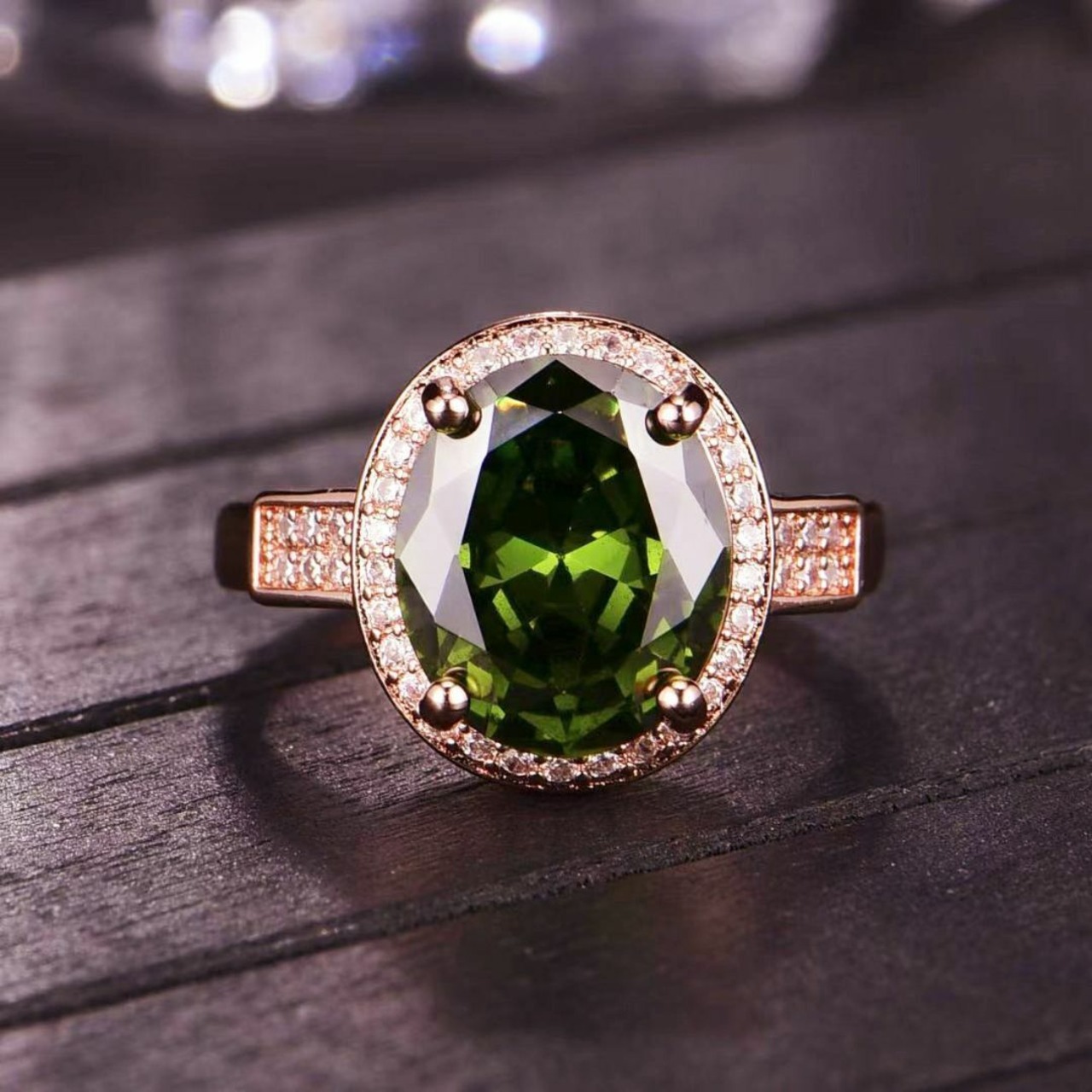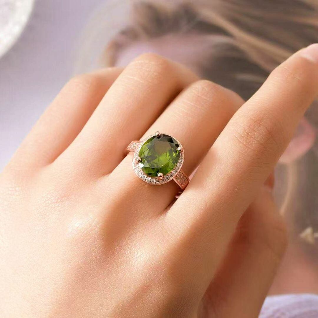 生命力の新緑とした人工宝石橄欖石の指輪です。