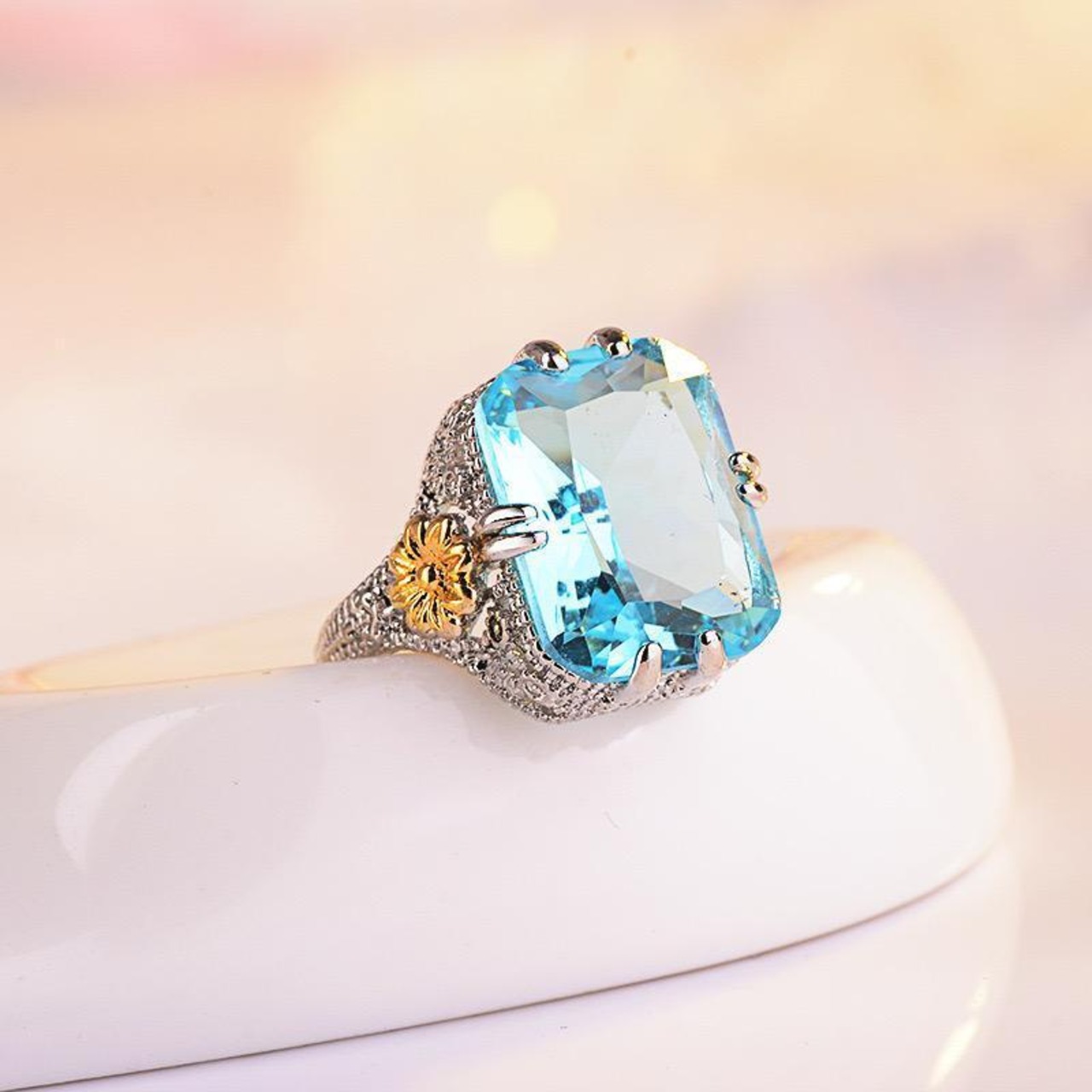 透き通った水色の大粒トパーズです!両サイドにゴールド花柄付いております、毎日使っても飽きないなジュエリー。