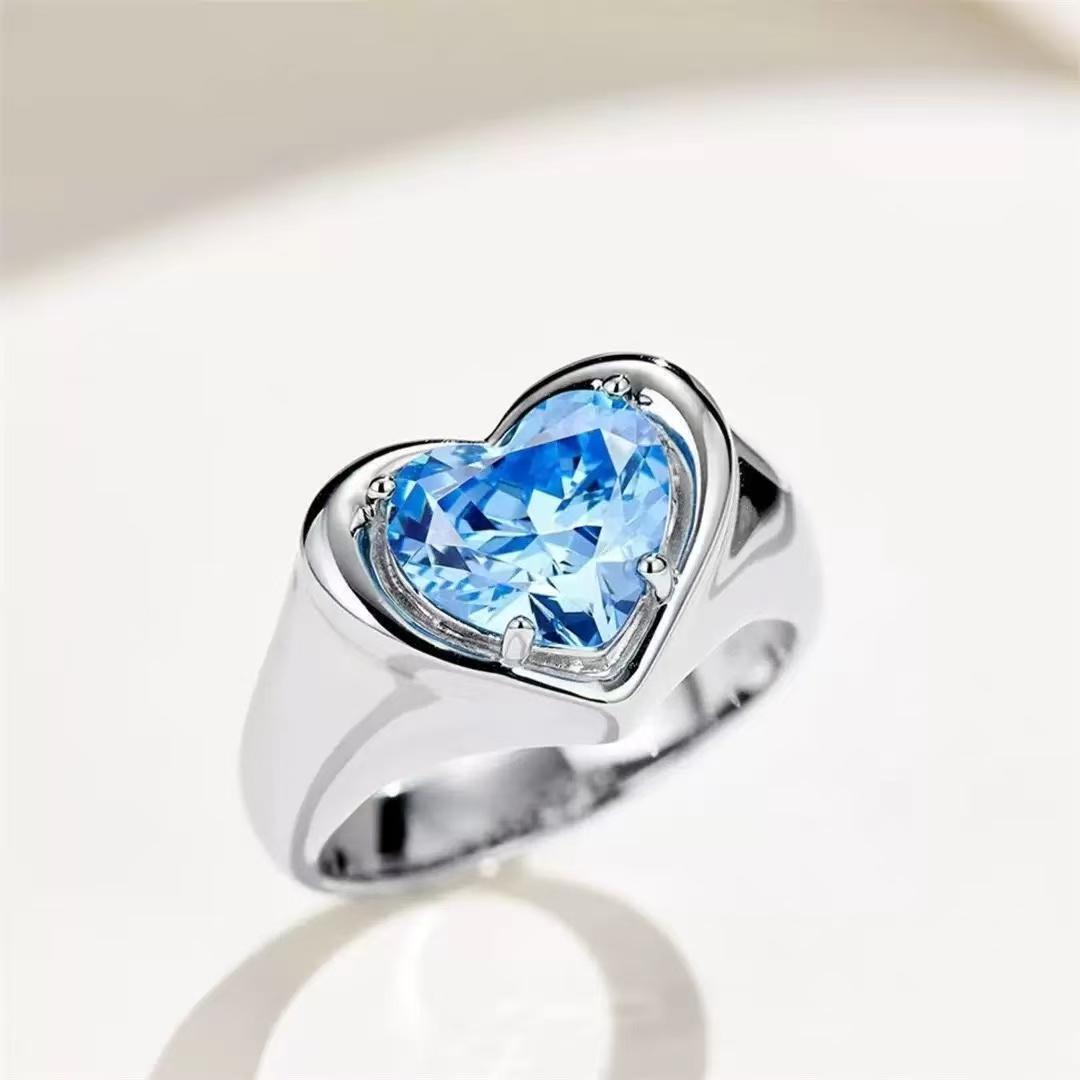 青色のオーバルカットサファイアを中心に、ダイヤモンド風の装飾が施されたフラワーデザインのリングです。
