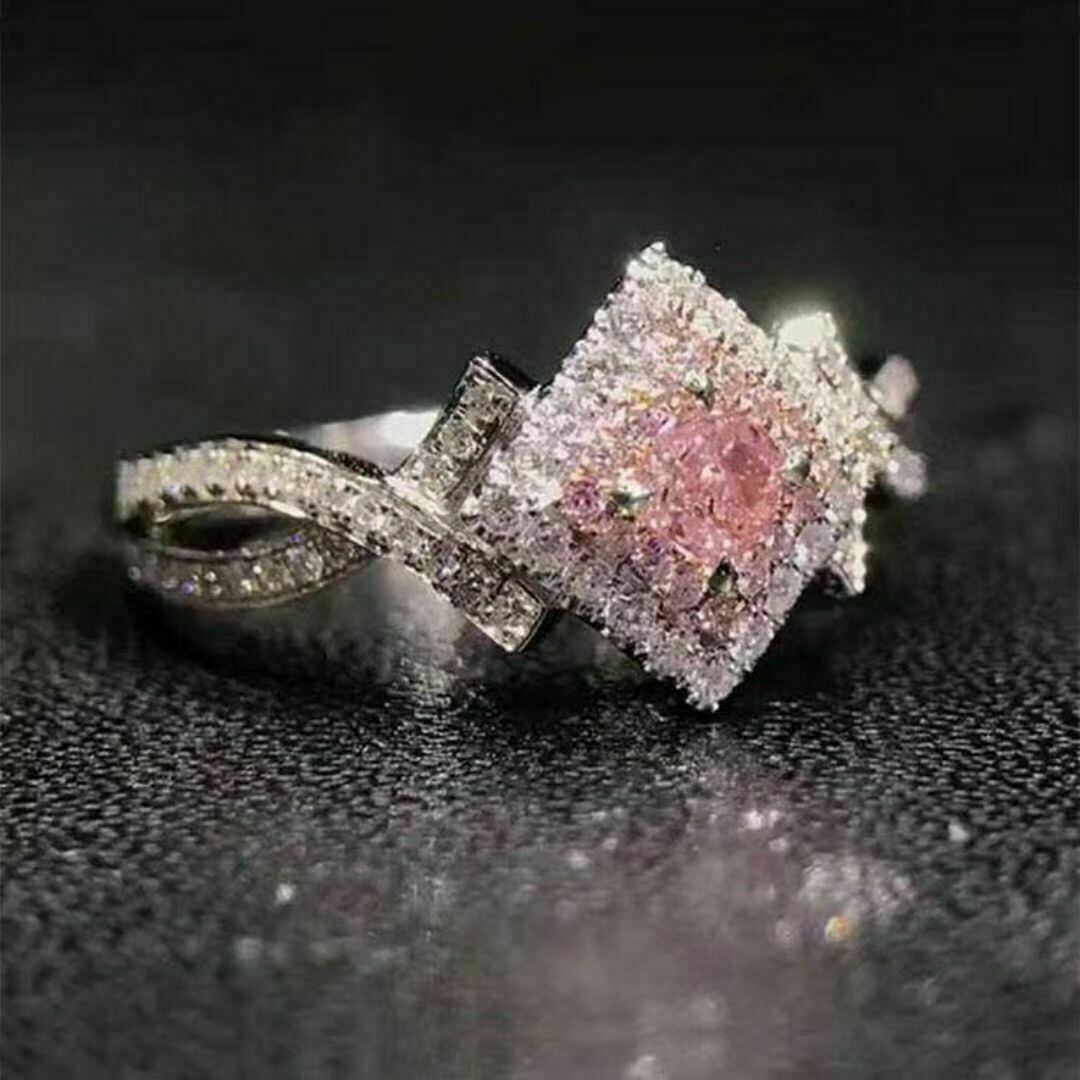 豪華なスクエアタイプで鮮やかに煌めく、周りに取り巻いた2色コーディングされた人工石がサンバースト (太陽の光線) のようにデザインされて、華やかに仕上げた、ゴージャス感を作り出して、着けるだけで大人の女性が演出できそう。