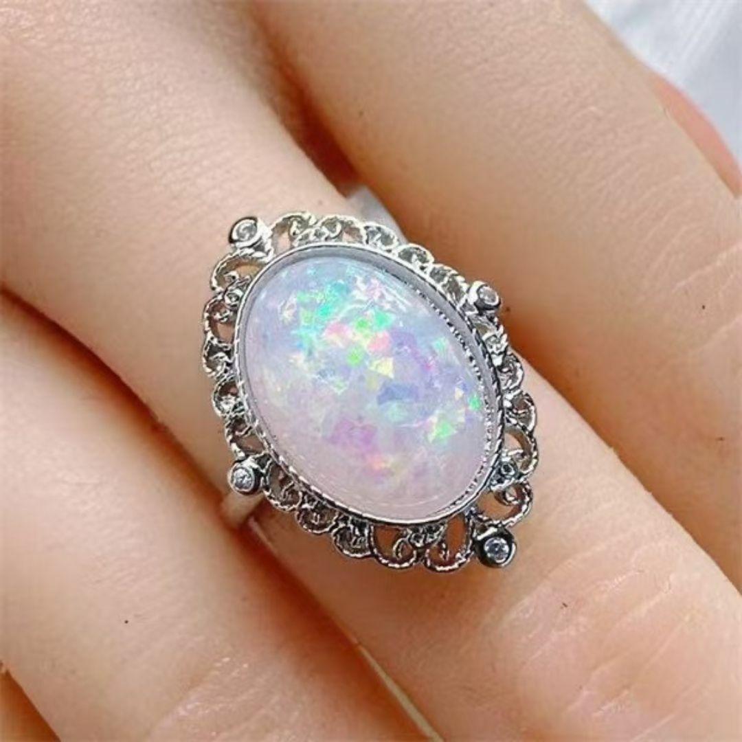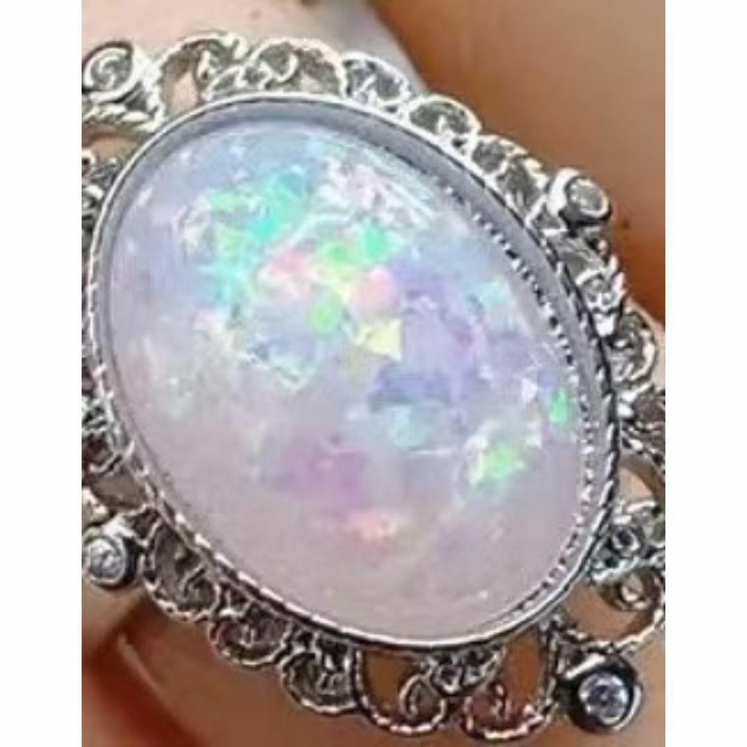 大粒のオパールの表面に、カラフルとした美しいオーロラの様なプレイオブカラー(遊色効果)が浮かぶ指輪です。