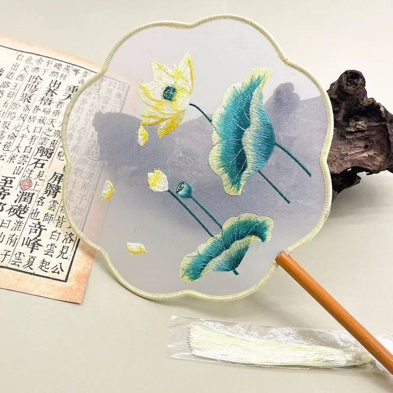 うちわ 両面刺繍 上品 花柄 透け感 団扇 和装浴衣 花火大会 お祭り 大輪のハス