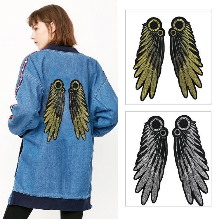 2枚セット ワッペン 手縫い付け 銀の翼 天使羽 シルバー 大きいサイズ 手芸