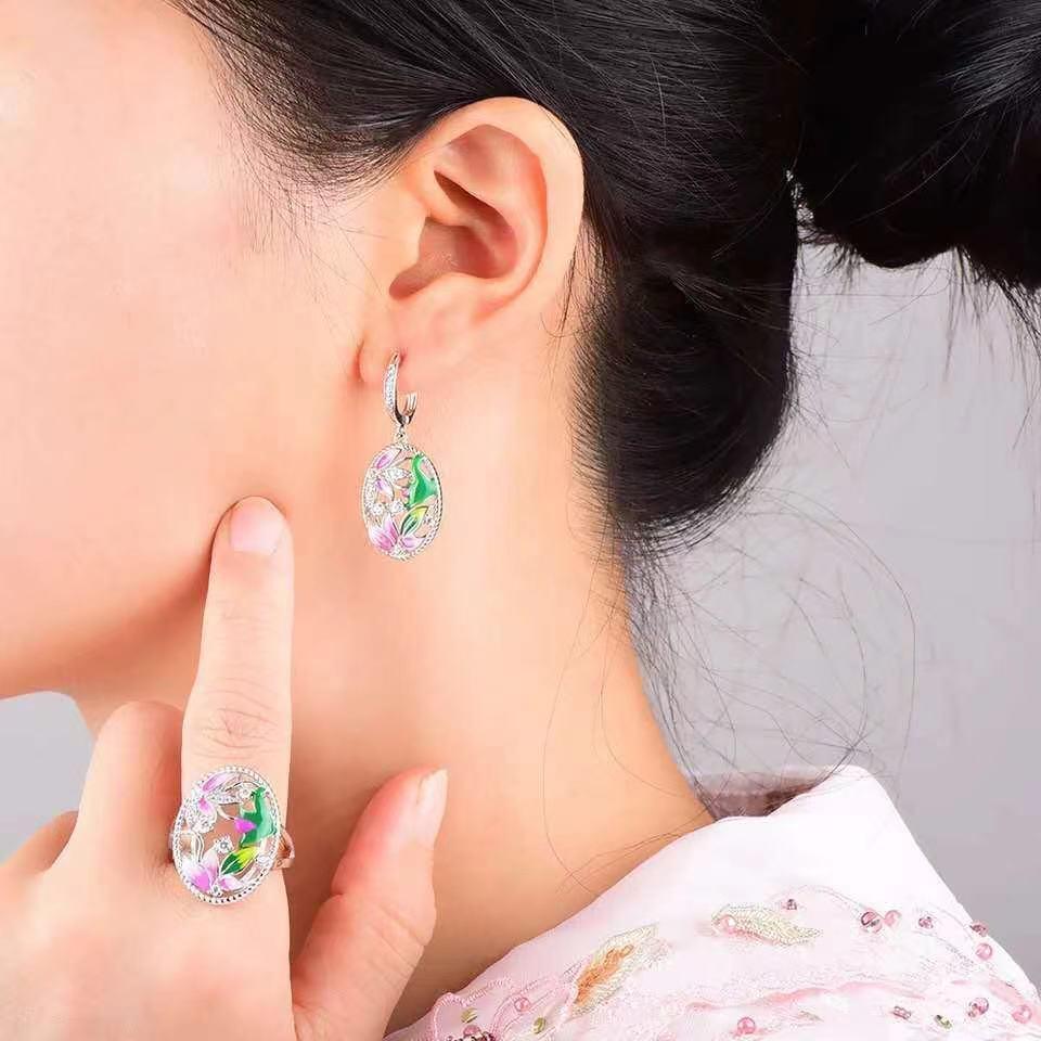 手作りのエナメルジュエリーは完全に電気メッキされており、可愛い3D花が耳元を華やかに!