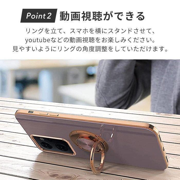 リングは360度回転、180度スイング可能。 ケースを横置きにするとスタンド機能になり、手に持たず動画鑑賞などを楽しむことができます。