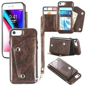 iPhone11 本革調 多数カード入れ 財布 保護カバー 光沢 ブラウン