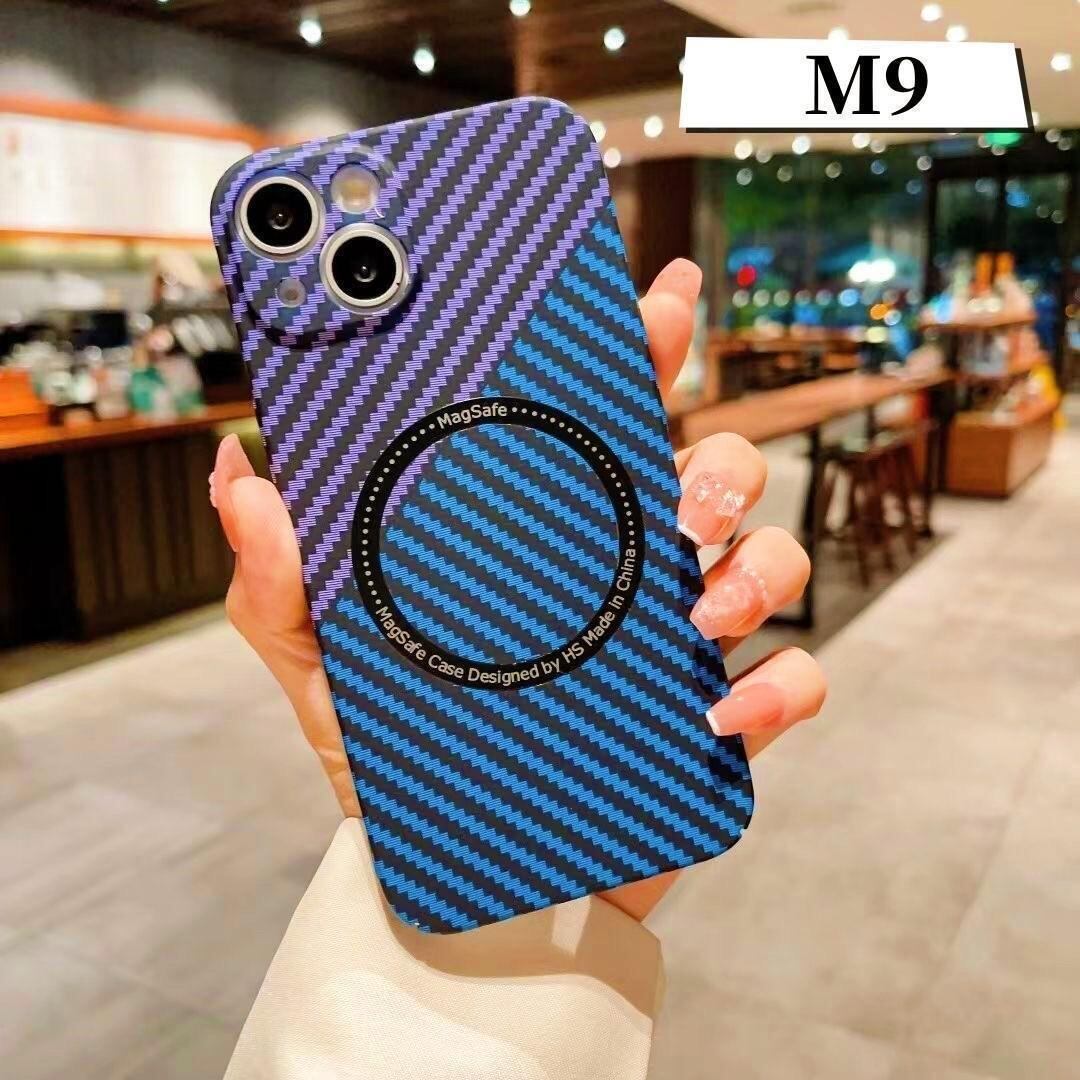 ケース背面は上質な炭素繊維調のPC素材を採用しており、最高な手触り心地あり、着脱が楽々、耐衝撃で滑りにくく、万が一落としてしまってiPhone本体を守ります。