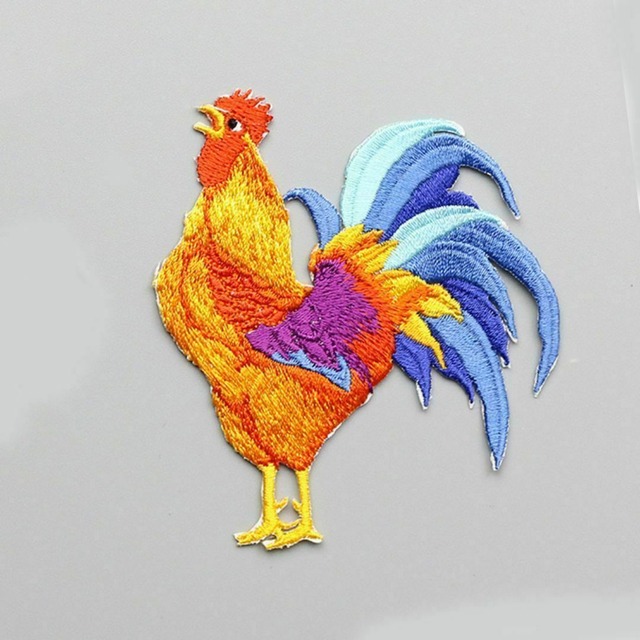 アイロンワッペン 刺繡 ニワトリ とり 雄鶏 最高の発色 衣類DIY